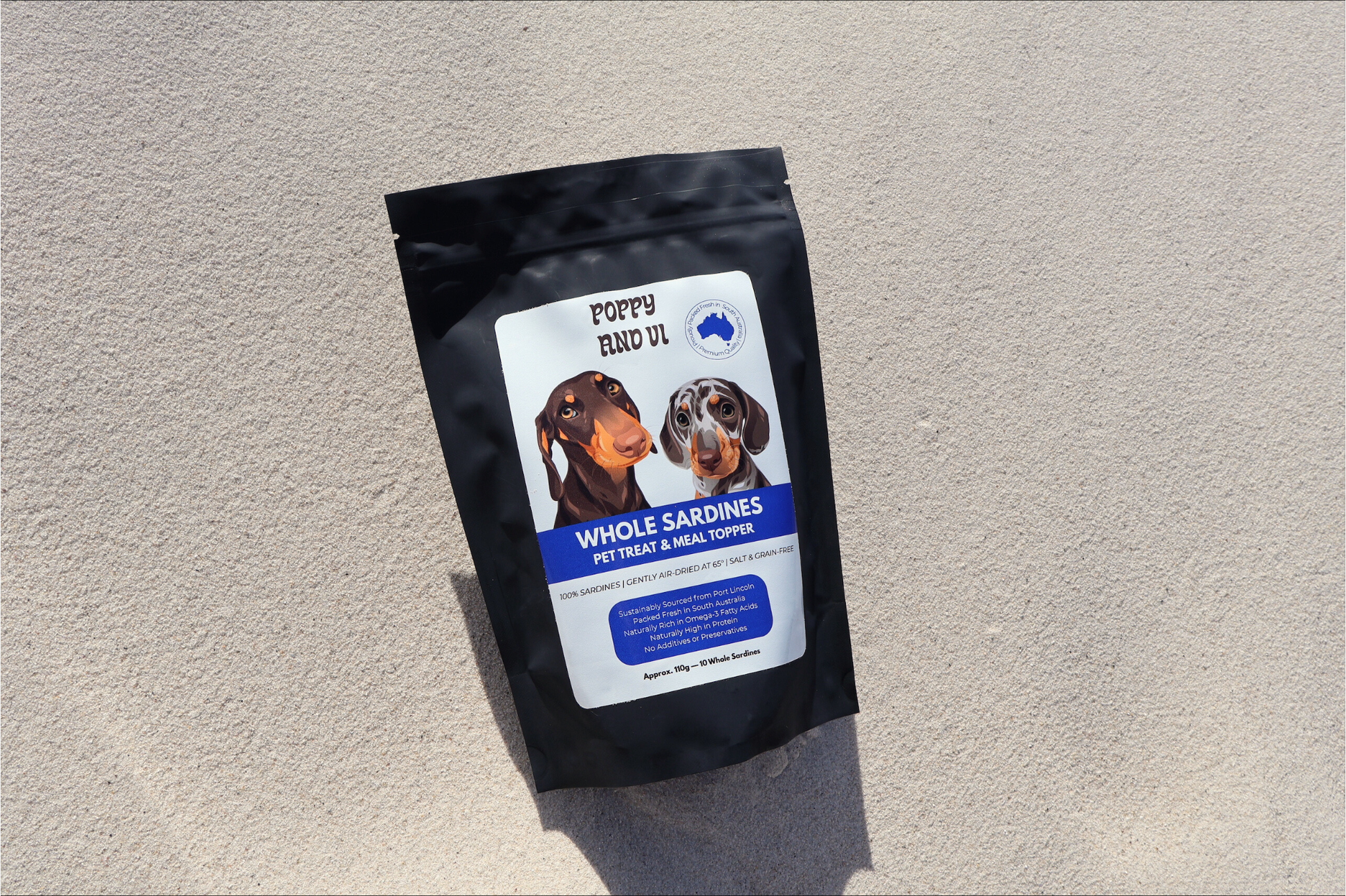 Sourced from Port Lincoln, our whole sardines are gently air-dried in a commercial dehydrator to lock in nutrients and flavour, creating a 100% natural crunchy treat or meal topper.